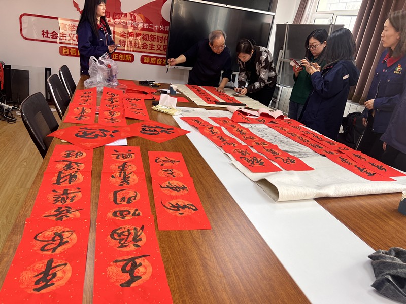 活動邀請呼市老年書畫協(xié)會理事、書法老師王昆英為分公司黨員員工寫春聯(lián)、送福字。隨著一副副飽含祝福的春聯(lián)、一個個寓意吉祥的福字躍然紙上,滿滿的深情、濃濃的墨香,烘托出節(jié)日的喜慶氣氛,傳遞出分公司黨組織對員工的關愛之情,還讓大家感受到書法藝術的魅力。